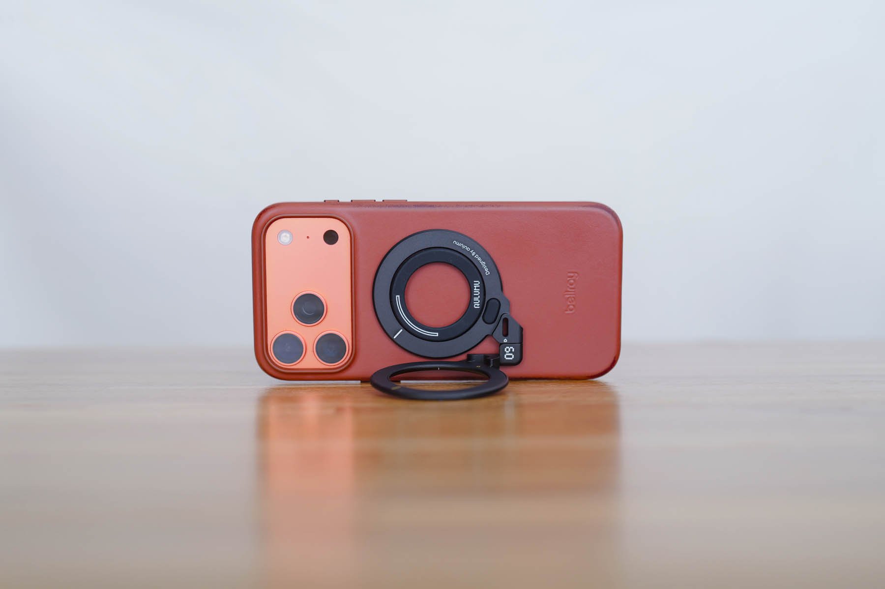 Fundamentally, the G09 is two magnetic rings connected by two points of articulation. This means you can fold out just one ring and turn the phone into a landscape stand, or fold out both and prop it up in portrait. The hinges are firm (apparently rated for around twenty-five thousand cycles) so your phone stays put when you prop it up, and the two magnetic faces contain magnets on both sides, so there’s no give or play between them when the thing is closed flat. It adds just 0.12 inches of thickness to the back of the phone. In practice, this means your pocket or bag will barely know it’s there.
